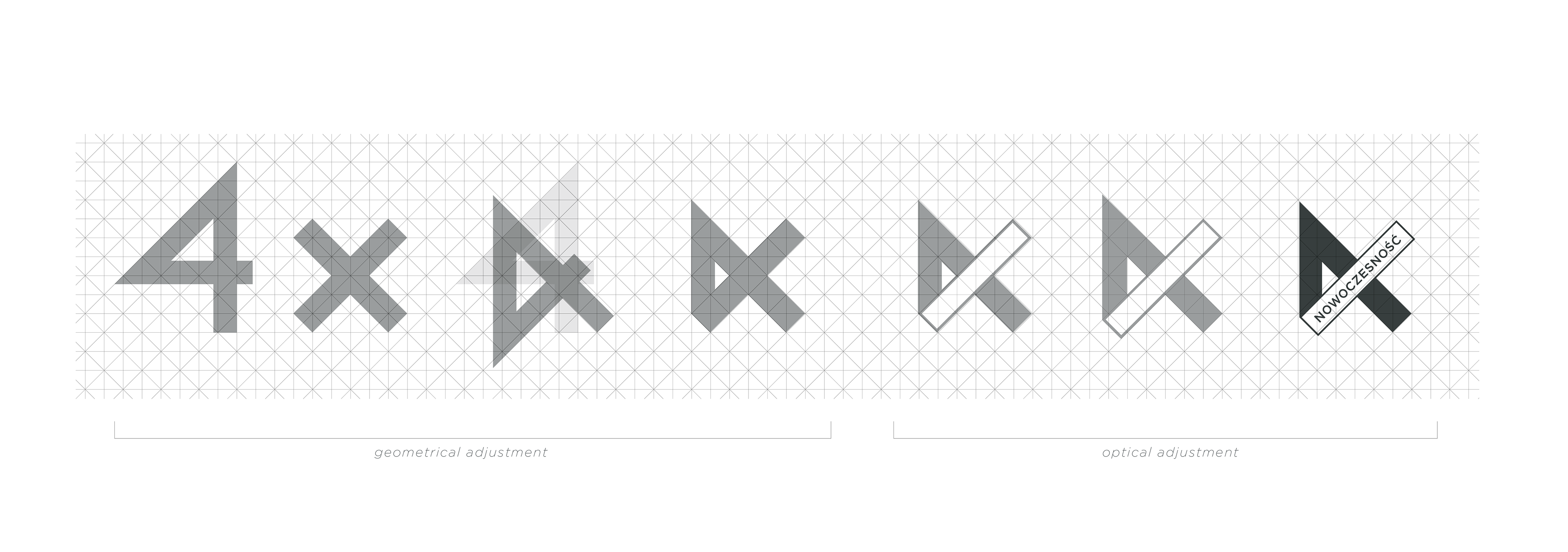 The 4 x Modernity logotype designed for a series of exhibitions at the National Museum in Krakow, running from 2021 to 2024, and dedicated to the search for original modernising patterns in 20th and 21st century Polish art, design and architecture.