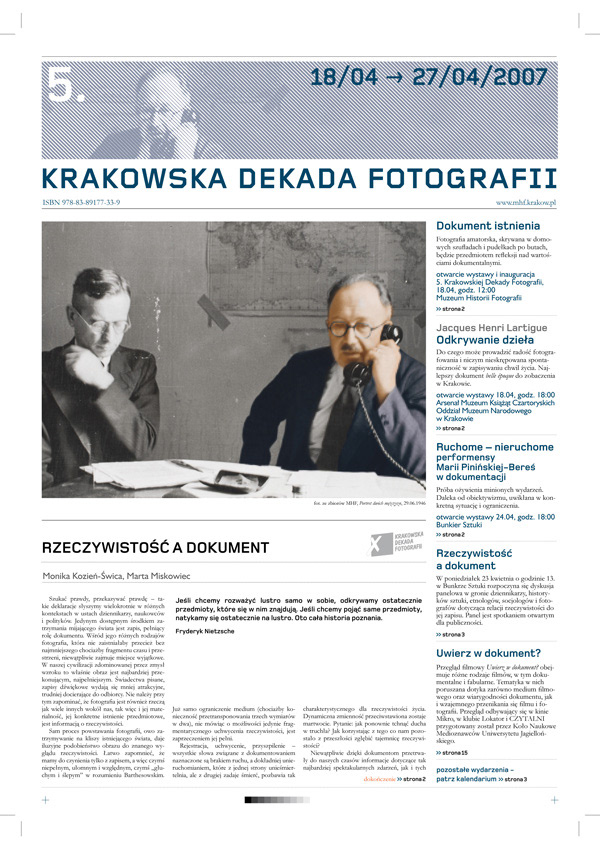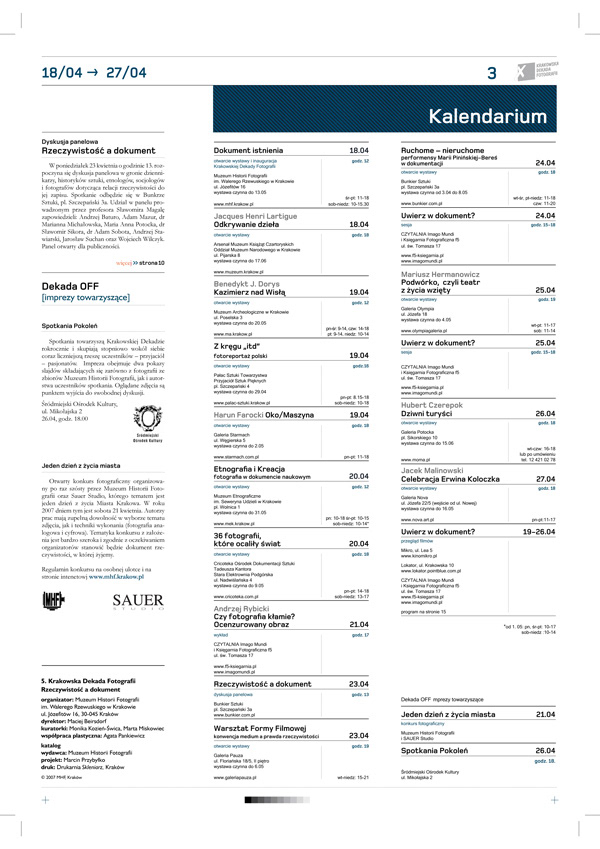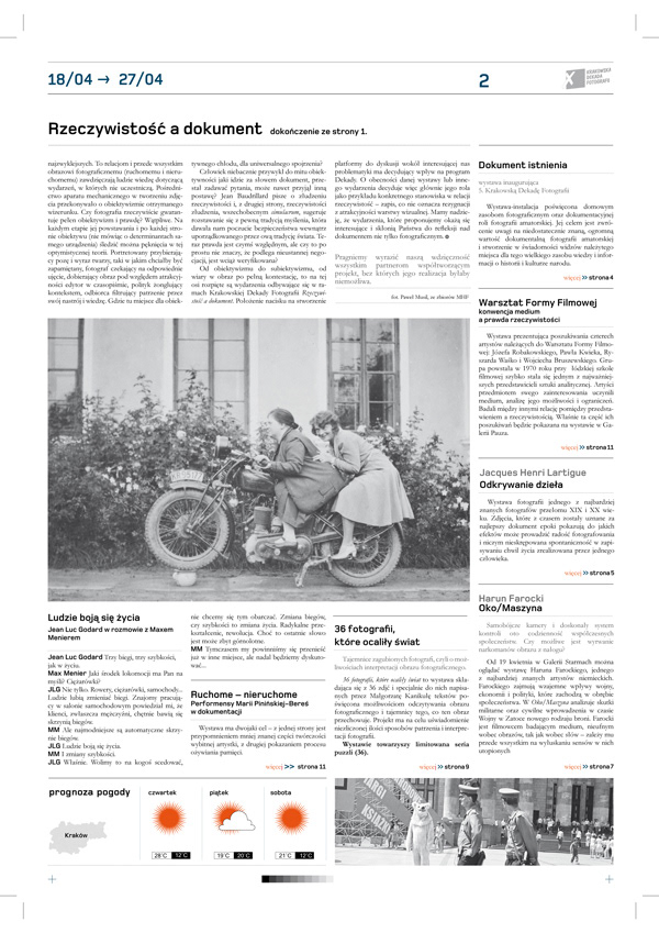 Program dla Krakowskiej Dekady Fotografii w formie gazety. // Program for Krakow's Decade of Photography - newspaper form.