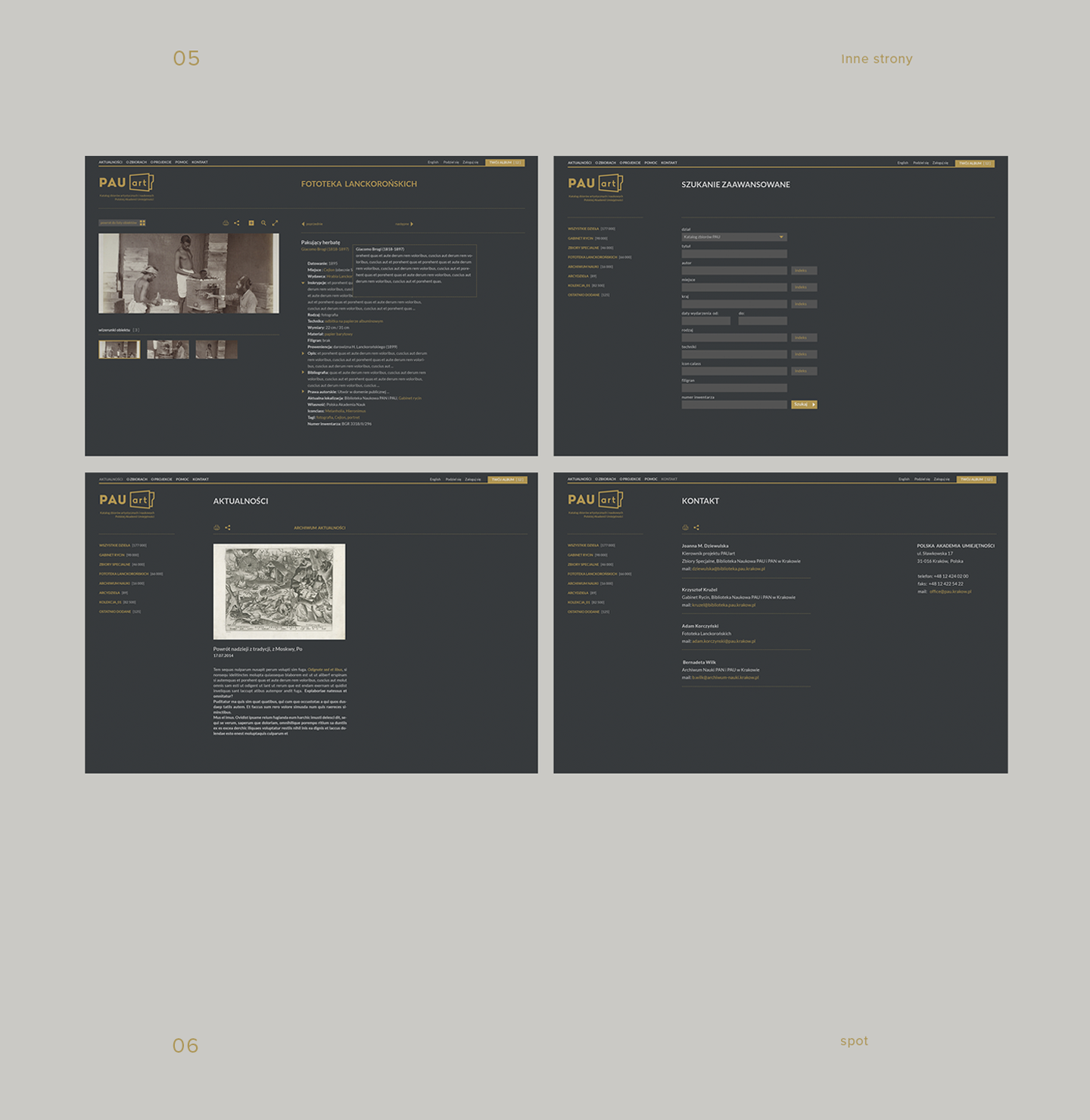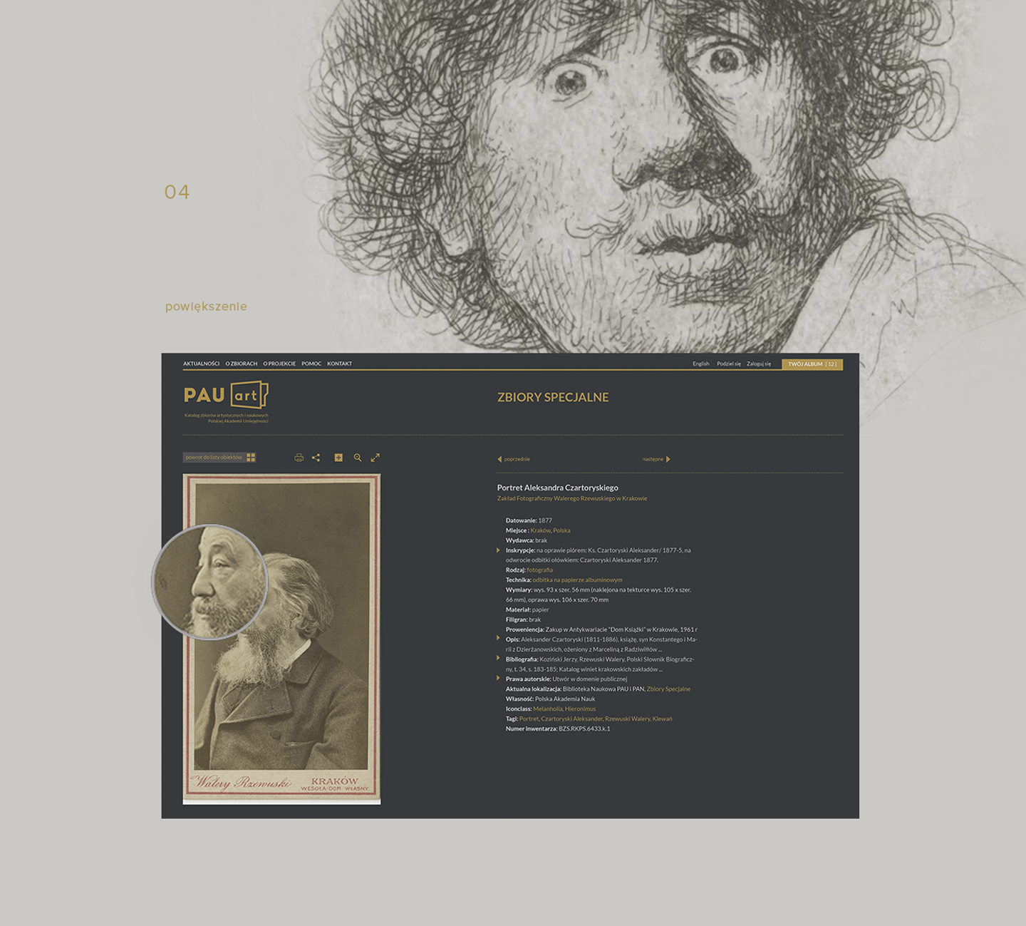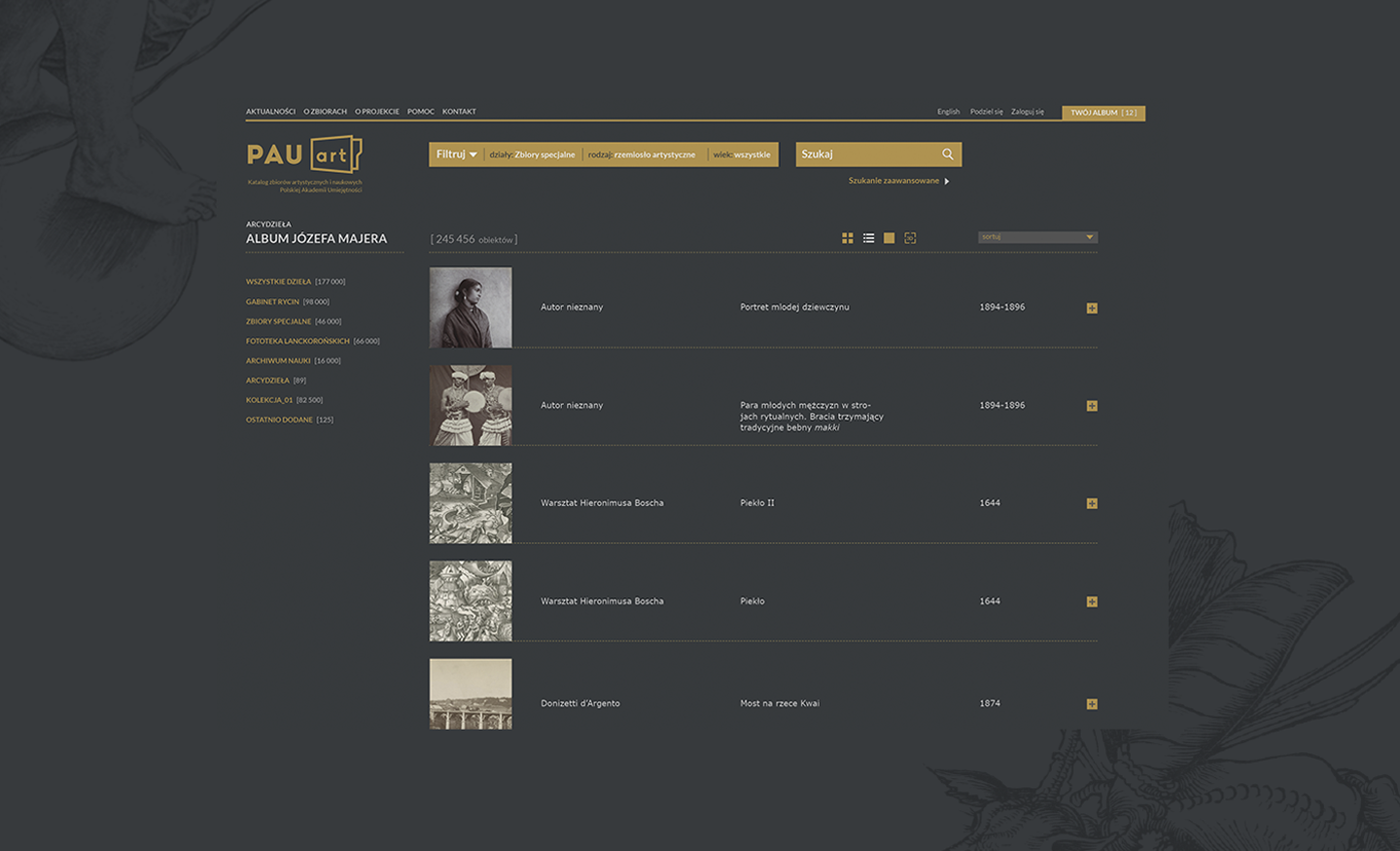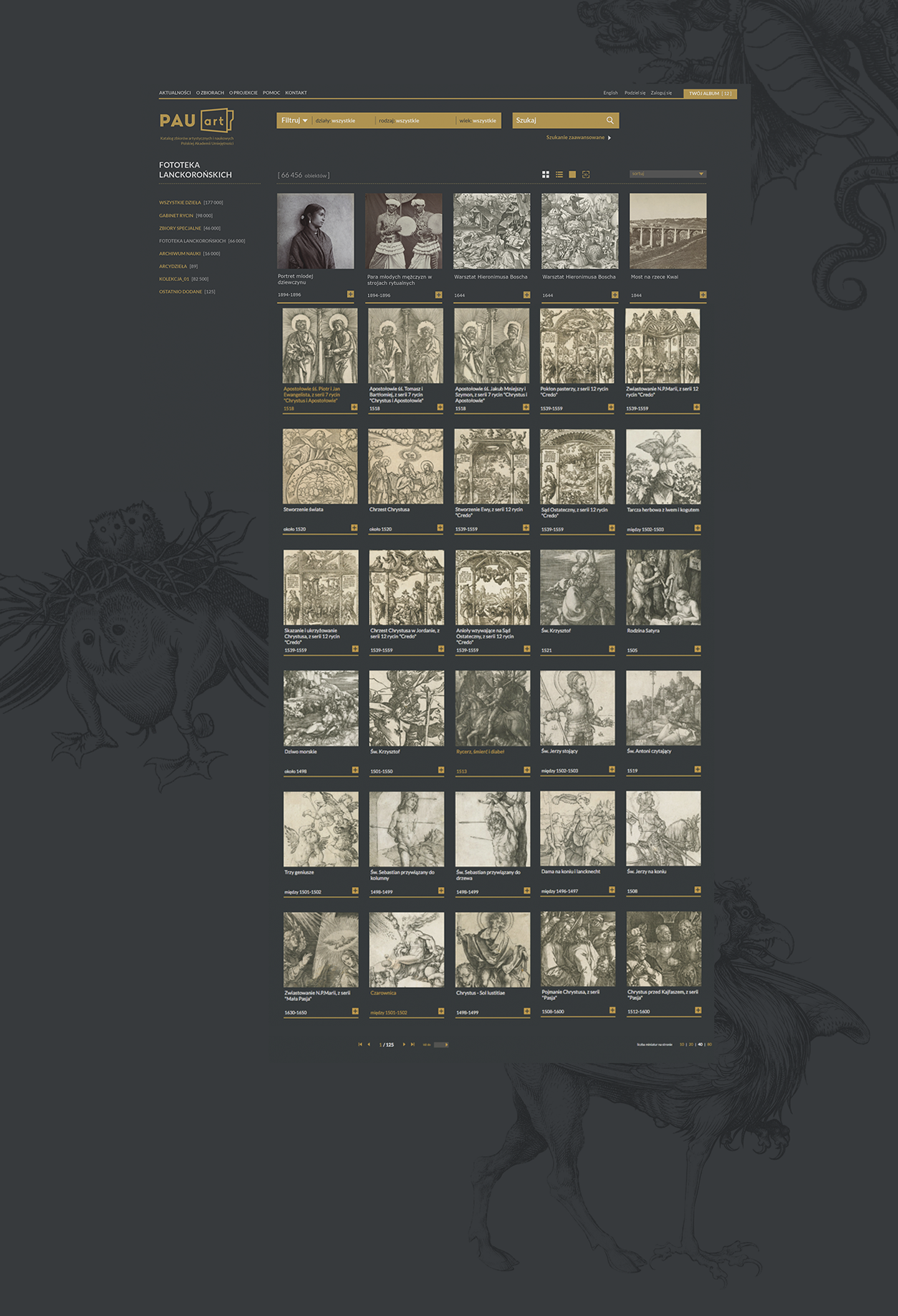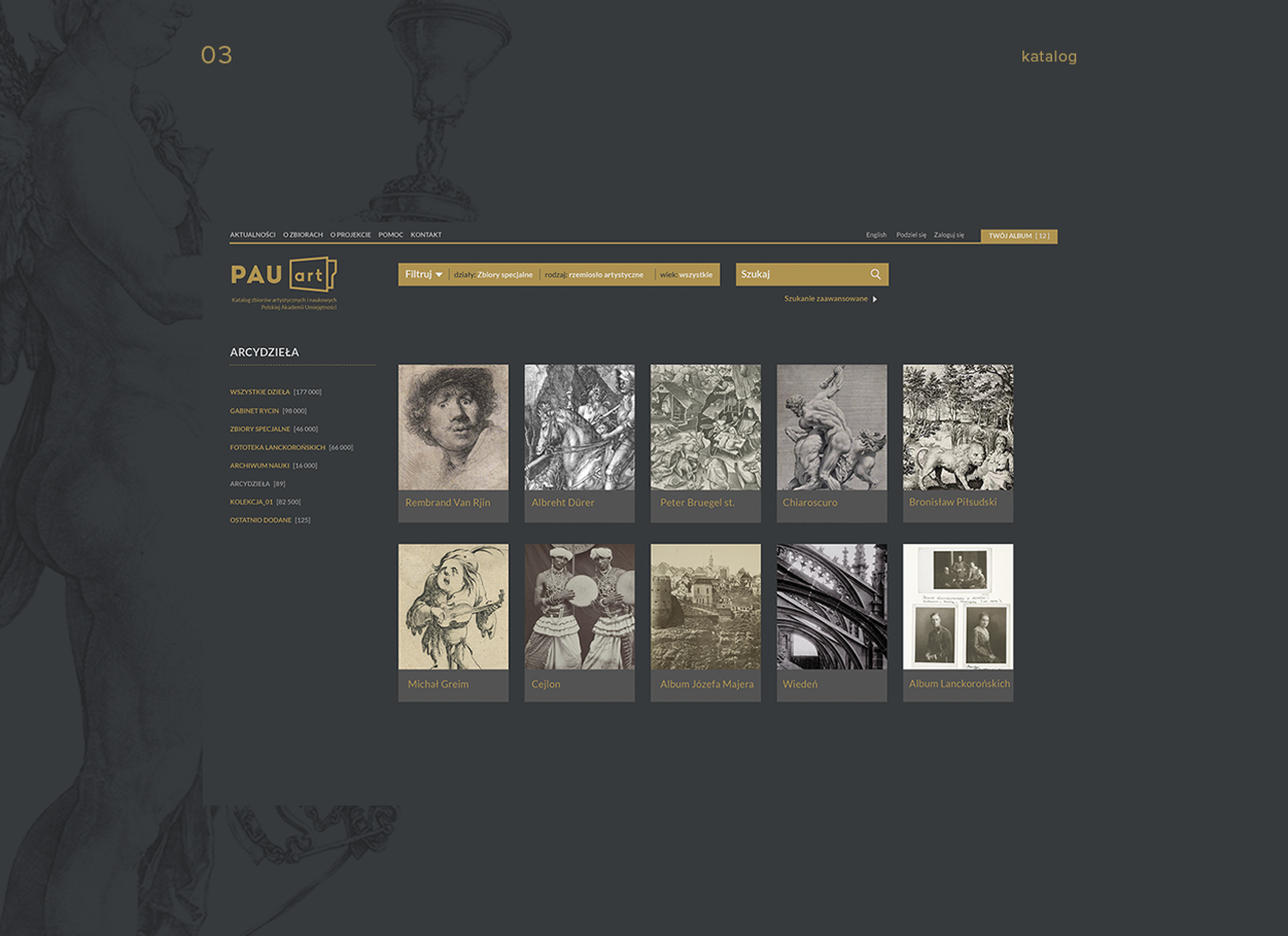 Polish Academy of Arts and Sciences within the pauart project commissioned us to design the website providing the online catalogue of the scientific and artistic iconographic collections. Starting from 2014, successive digitization and scientific study has covered graphics and photographs from the PAAS and of the PAS collections. Among them there are Dürer, Breugel and Rembrandt works as well as the extraordinary photographs from the Lanckoronski Phototheca. In the long term the project involves digitization of the whole collection estimated to gather about 240,000 items.