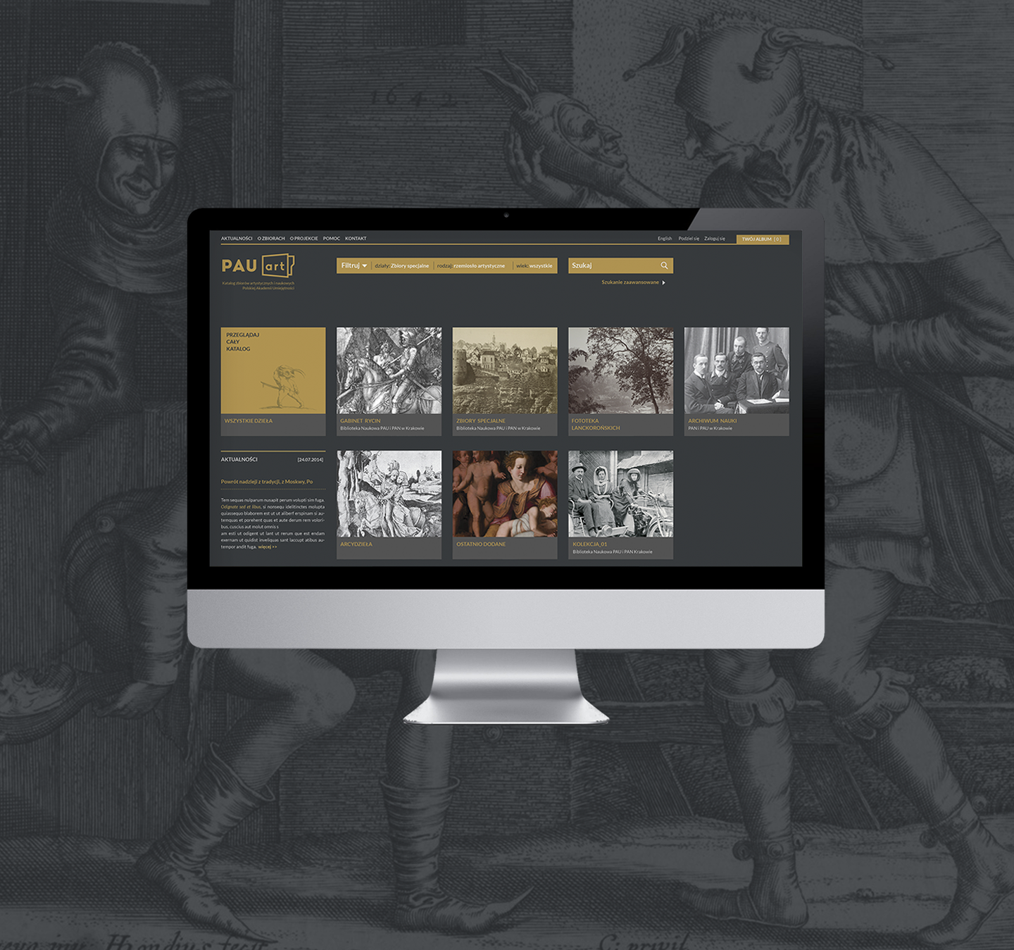Polska Akademia Umiejętności w ramach projektu PAUart zleciła nam zaprojektowanie strony www, udostępniającej w formie katalogu online bogate zbiory artystyczne i naukowe. Począwszy od 2014 roku sukcesywną digitalizacją i naukowym opracowaniem objęte są grafiki i fotografie ze zbiorów PAU i PAN w Krakowie. Wśród nich prace Dürera, Bruegla, Rembrandta, a także fotografie z niezwykłej Kolekcji Lanckorońskich. W perspektywie długofalowej projekt zakłada digitalizację całości zbiorów, w skład których wchodzi obecnie około 240 tys. obiektów.